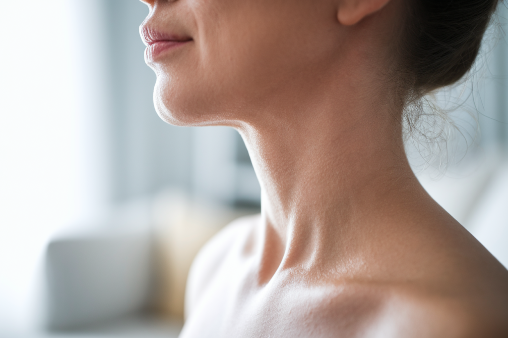 Le muscle platysma, qui s’étend du thorax jusqu’à la mâchoire, se relâche également. Cette détérioration musculaire contribue à l’affaissement général de la zone cervicale. Les variations de poids répétées aggravent le phénomène : la peau étirée puis relâchée perd sa capacité à retrouver sa forme initiale.