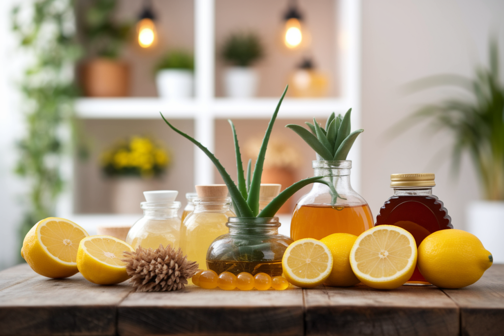 Le citron contient de l’acide citrique, un exfoliant naturel qui aide à éliminer les cellules mortes et à éclaircir progressivement les taches. Sa richesse en vitamine C stimule aussi le renouvellement cellulaire.